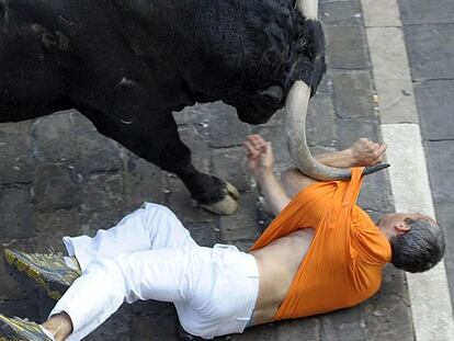 Large number of runners trampled by bulls during the 2 minutes and 25 second route