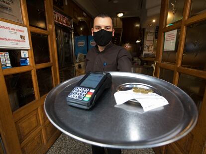 The coronavirus health crisis has prompted patrons to use more plastic in bars and restaurants, but only a slight fall has been seen in the gratuities they leave behind