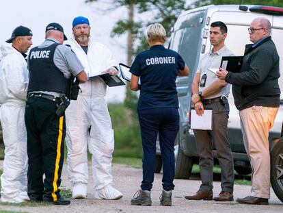 Damien Sanderson was discovered with ‘visible injuries’ on the James Smith Cree Nation, where most of the attacks took place. His brother is still at large