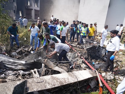 The plane crashed into a residential area shortly after starting its climb. It was carrying 169 Indians, 53 Britons, one Canadian, and seven Portuguese nationals along with the crew, bound for London