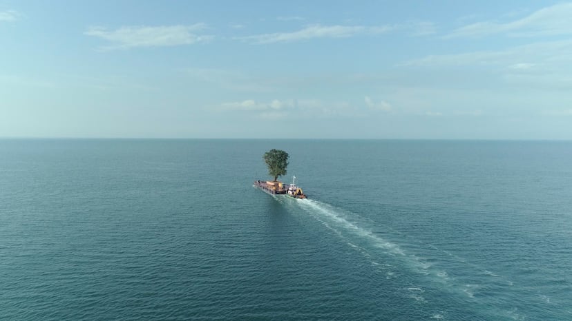 We are talking about a movie scene, but it is not a fantasy movie. Taming the Garden is a new documentary by Salomé Jashi, a 41-year-old filmmaker from Tbilisi who told the story of these traveling trees. It begins precisely with that scene: a tree floating under a cloudy sky, on a calm sea. How did it get there? Where does it come from? Where is it going?