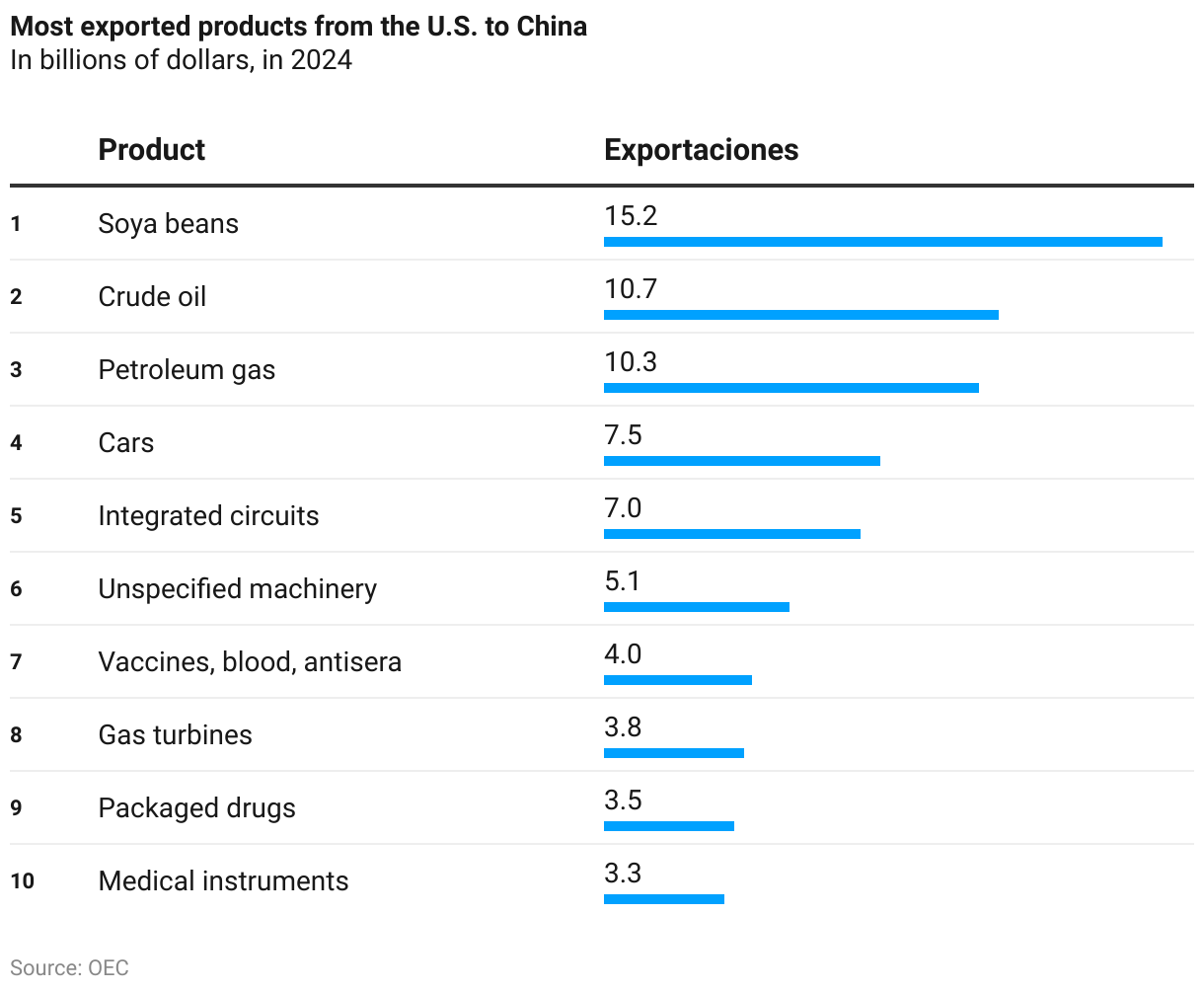 In contrast, U.S. exports to China are more diversified, but considerably lower in volume. They are primarily composed of products such as aircraft, vehicles, semiconductors, industrial machinery, and agricultural goods like soybeans and beef. While these sectors are strategically important to the U.S. economy, they are limited in scale compared to the vast volume of imports from the Chinese market.