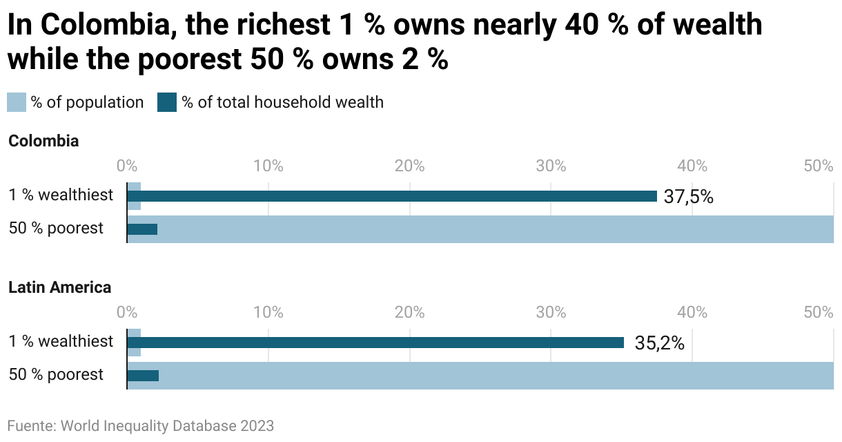In Colombia, extreme wealth and social inequality are two sides of the same coin. Many of the country’s richest people have evaded and avoided taxes for decades. Their assets have increased significantly, while the tax rates they pay to the state have stagnated or decreased. This paradox – documented in various academic studies – deepens inequality, undermines the country’s development and affects the daily lives of the millions of people who remain in poverty.