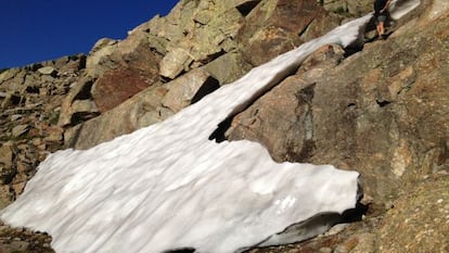 The formation is about 25 meters long, half as wide, and around a meter thick. "It will probably last a week or more, if it doesn't rain heavily," said Vías last week. He noted that the peculiarities of last winter, which was exceptionally tough, explain the existence of these blocks of snow so late in the year. Peñalara lake, which sits at the bottom of the range, froze over last winter, in places reaching a thickness of 179 centimeters - the densest since ice formation on the lake began to be measured in 1996. Furthermore, explains Vías, the ice lasted for more than four months, a month longer than the average over the last two decades.