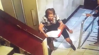 In an apartment block in Bilbao in the Basque Country, a man opens the elevator door for two senior women. But what looks like a friendly act suddenly turns violent, with the man grabbing the shirt collar of one of the women and pulling off her pendant. The violent attack took place on August 14 and was caught on security cameras in the building.