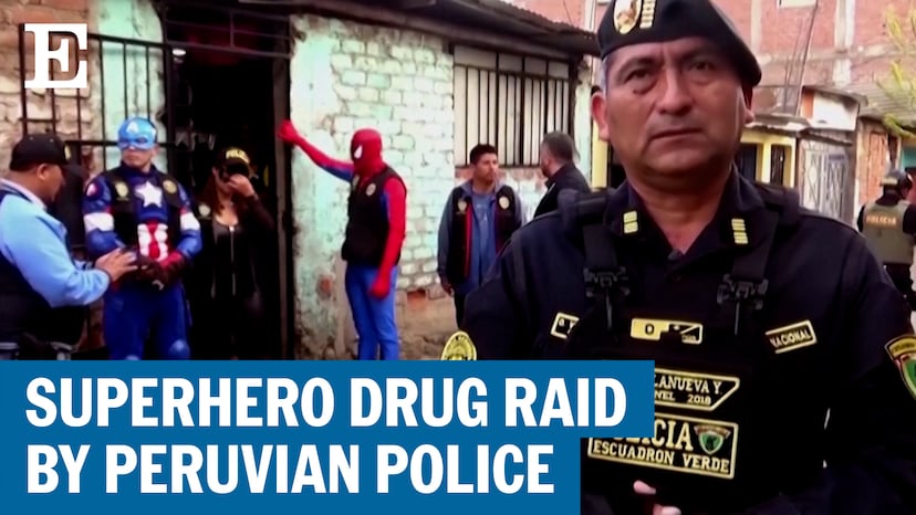 Officers in the Peruvian National Police dressed up as superheroes to carry out a drug raid on Saturday. The police officers put on Spider-Man, Captain America, Thor and Batman costumes in an effort to appear as performers who were entertaining children at a nearby school.