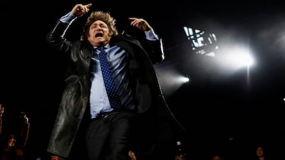 Burning the central bank “will end inflation”; the sale of bodily organs would be just “another market”; politicians “must be removed by kicking their asses.” Shouting such proposals aloud on stage, ultra-libertarian economist Javier Milei, 52, has taken over the Argentine public agenda. Histrionic, disheveled, but at the same time very image conscious, the far-right candidate has imposed his anti-establishment fury on the country’s political debate since 2016, when he first appeared on television. His anger has appealed to the frustration of a society jaded by politics: going from talk show host to presidential candidate, Milei finished first in this Sunday’s first-round election. In fact, he won almost 32% of the vote, far more than both the ruling Peronists and the right wing, which has begun to take its cues from him. But Milei did not want to establish an alliance. His battle cry goes against them all: “The caste is frightened.”