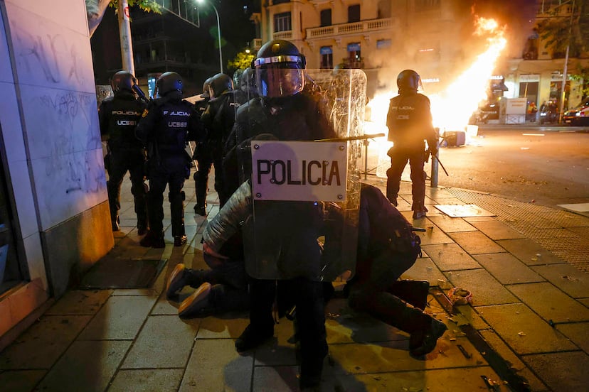In Barcelona, the Catalan capital, a smaller group of around 350 people congregated in front of the government delegation building for a peaceful protest, and in the city of Valencia several hundreds marched to demand Sánchez’s resignation and prison for Puigdemont. There was a smaller crowd outside PSOE headquarters in Alicante.
