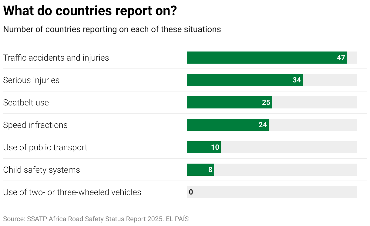 The figure of 259,601 in the SSATP report is the most reliable available for Africa based on the latest country-by-country data published by the World Health Organization (WHO) and other sources, because not all states have up-to-date and accurate information on injuries and fatalities. Such a high number, warns the SSATP, poses “serious challenges” for public health and the continent’s development. When a person dies or is injured, it causes a country to incur healthcare costs, decreases productivity, and increases the risk of poverty for families. “Countries should understand that road deaths jeopardize their economies and development,” warns Binta Sako, technical officer of the WHO’s Violence-Related Injuries and Disability Unit in Africa, specializing in road safety issues, in a telephone interview with EL PAÍS.