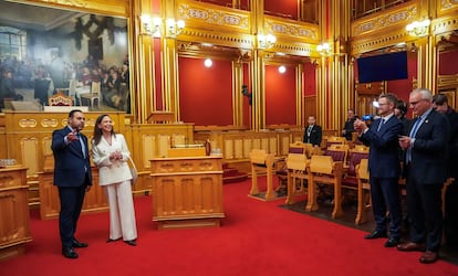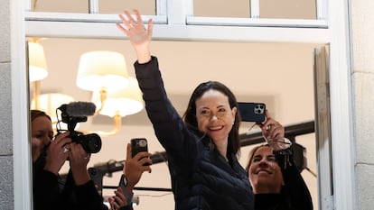 A few minutes later, Machado, dressed in black, went down to the street surrounded by heavy security to continue greeting and taking selfies with her supporters. “María, you did it!” they shouted. “Oslo, here I am!” the Venezuelan politician said on her social media profile. In another post, alongside photos of her meeting with those waiting for her arrival in the Norwegian capital, Machado said: “The hug that all of Venezuela needs.”