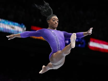 Confidence growing with every rotation, Biles soared to victory in her first meet since the Tokyo Games