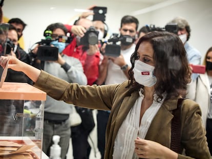 The big question now is what consequences this spectacular result will have on the national scene. The president of the national PP, main opposition leader Pablo Casado, was the first to speak on Tuesday night from the balcony of the party’s headquarters in Genova street, in the Spanish capital. “Today Madrid has delivered a motion of no confidence against sanchismo,” he said, in reference to the PSOE prime minister, Pedro Sánchez.