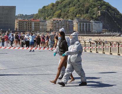 A woman was arrested on Monday at Zurriola beach in San Sebastián, in Spain’s Basque Country, after going surfing when she should have been in quarantine. After confirming that the woman had tested positive for Covid-19 and was meant to be at home, several officers – some in protective suits to avoid contagion – went down to the beach to take her out of the water. When the woman, a lifeguard at La Concha beach, refused to stop surfing and tried to flee from the officers, she was arrested for disobeying authorities and crimes against public health.
