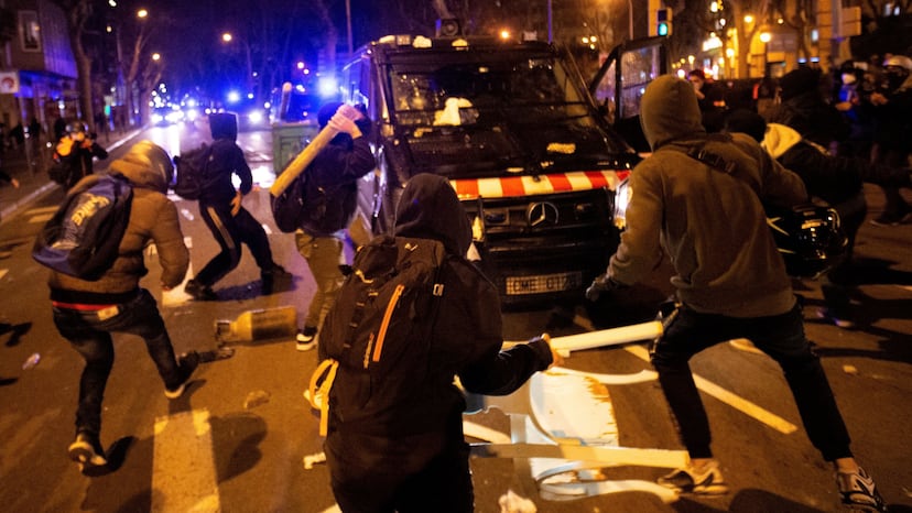 In the Catalan capital, Mossos reported that protesters hurled stones, bottles and blunt objects in Urquinona square, Via Laietana and Ronda de Sant Pere. Local storefronts were spray painted and patrol cars hit with “incendiary devices.” Officers were pelted with stones to the cry of: “Out with the occupation forces.”