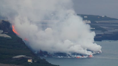 The arrival of the lava in the ocean is something that has been worrying the authorities since the eruption began on Sunday, September 19, given that the molten rock will react with the saltwater to create toxic clouds. The only person to die during the eruption of the Teneguía volcano on the island in 1971 was killed by the inhalation of these gases. For this reason, the work of the Civil Protection force was stepped up yesterday, as the “explosions and the emission of harmful gases” could be seen, according to the Pevolca crisis committee.