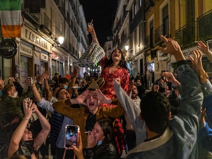 Nighttime venues, with the exception of those with outdoor areas, remain closed in Catalonia, due to restrictions aimed at curbing the spread of the coronavirus. A 25-year-old woman at another street party on Saturday said this was to blame for the outdoor drinking. “We have been at home for two years. When we see botellones on television we are always shocked, but people continue to go out, they are not opening the nightclubs for us,” she said at the party in the square in front of Barcelona’s Contemporary Art Museum (MACBA), where hundreds of people had gathered.