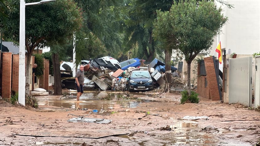 In the Maestrazgo region of Castellón, heavy downpours of up to 300 millimeters fell in a few hours in some areas. Thousands of people remain without electricity and the material damage is incalculable. There are still many roads cut off in Valencia, where thousands of cars are still stranded after being swept away by flooding, and the high-speed train service between Madrid and Valencia and the Mediterranean corridor to Barcelona has been suspended, potentially for weeks, as well as most of the commuter trains in the city. Spanish Prime Minister Pedro Sánchez and the leader of the opposition Popular Party, Alberto Núñez Feijóo, visited the affected area Thursday. Three days of national mourning have been declared.