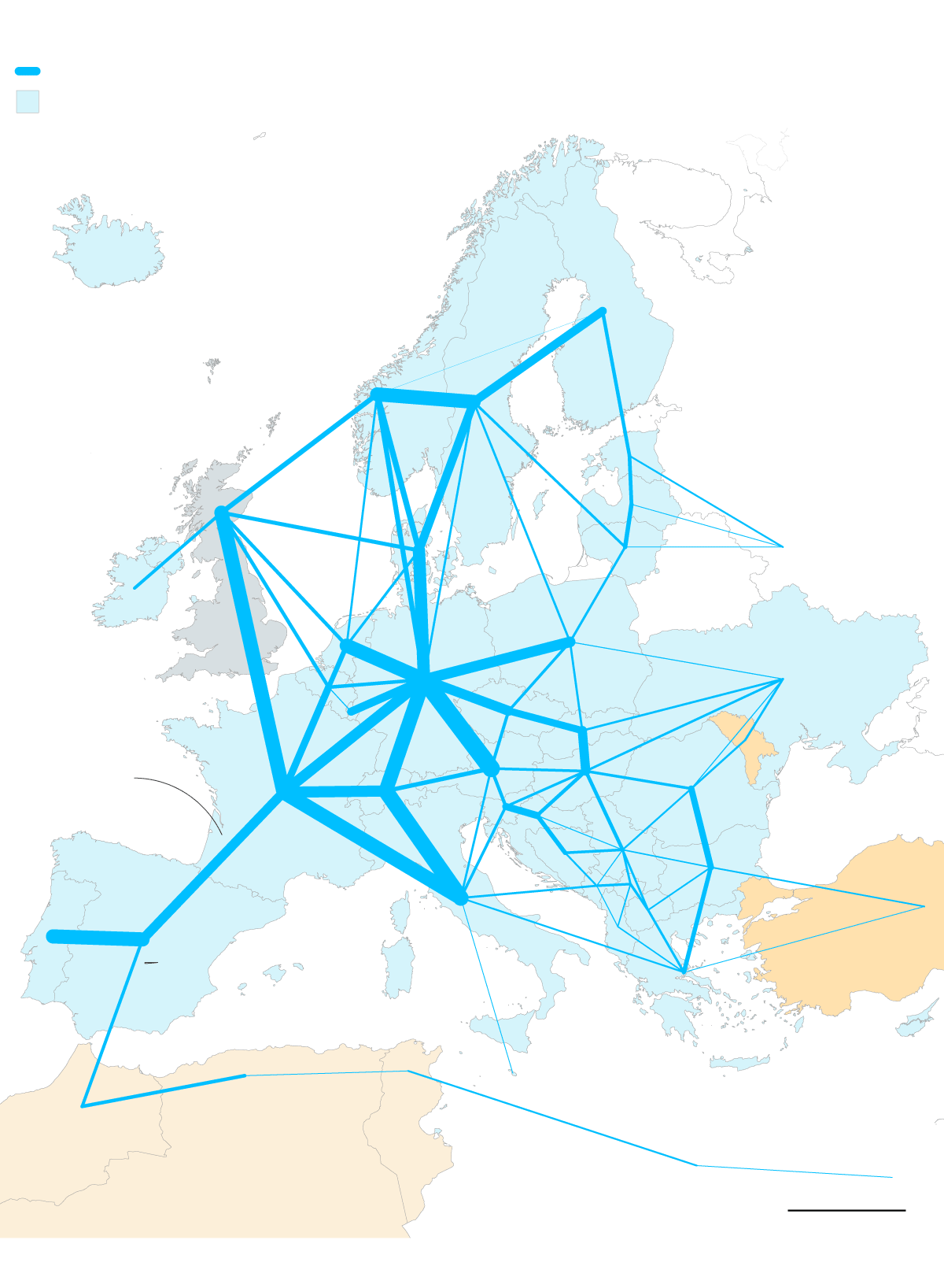 In short, half a dozen interconnections like this would be needed to bring the Iberian Peninsula on par with the well-developed international grids of the other major euro-area economies: Italy, France, Germany, and the Netherlands. And a dozen more would be required to meet the target set for the end of this decade.