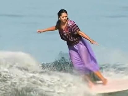 For 34-year-old Sonia Ziani, it is also a kind of therapy. She has participated in several documentaries about women and surfing and has starred in another with Portuguese big wave enthusiast Nic von Rupp, with whom she traveled in a van to the most special places for this sport in the province of Gipuzkoa. But, beyond that, she says, surfing has changed her life. “I have thought so many times about what it would be like if I hadn’t gone into the Pukas shop that day. Today, I would probably be a married woman, with children, at the service of my husband.” Born in Orio to Moroccan parents who emigrated first to Germany and then to the Basque Country, she is talking about the day when, aged 18, she went to buy a sweatshirt — “the typical one that says ‘Surfing the Basque Country’” — and met Adur Letamendia, son of the co-founders of the pioneering surfboard factory that eventually became the brand most associated with the arrival and development of surfing in the area; for years, they organized a top-level international competition in Zarautz. The fact is that, between chat and coincidences, a job offer was forged to be a shop assistant at their surf school during the summer.