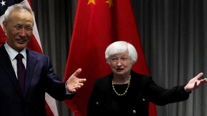 Yellen met with her previous Chinese counterpart, Vice Premier Liu He, in January in Switzerland and made a big speech at Johns Hopkins University in April calling for " cooperation on the urgent global challenges of our day " between the two countries for the sake of maintaining global stability, while supporting economic restrictions on China to advance U.S national security interests.