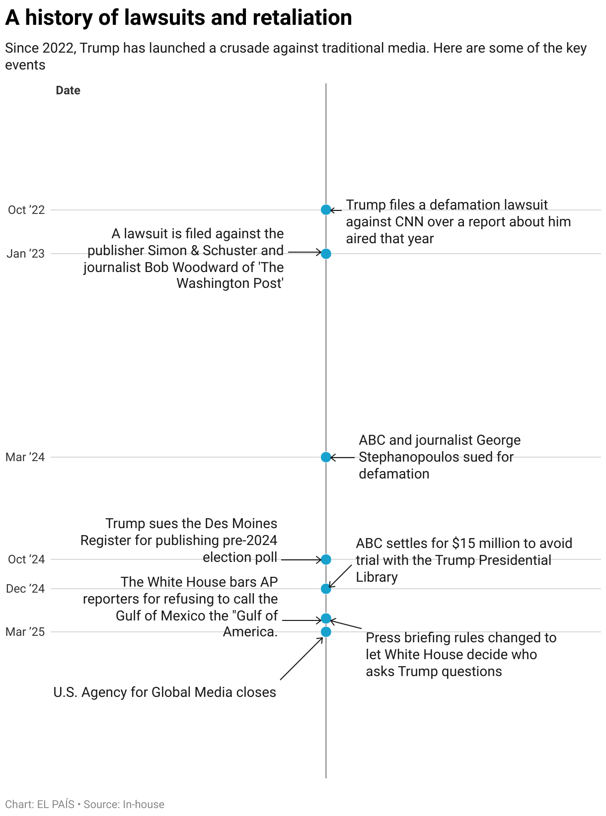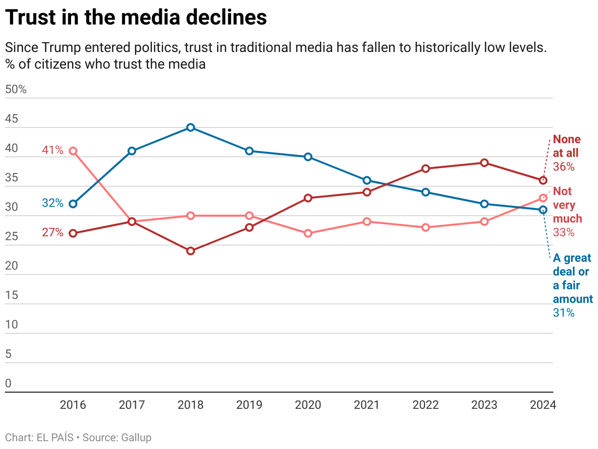 Trump and the Republican Party are well aware of these numbers and what they mean for the future. That’s why the White House has launched an intense campaign of disintermediation. The goal is to weaken traditional media as much as possible and strengthen an alternative system — a new media ecosystem in which institutions and new actors communicate directly with citizens, without troublesome intermediaries. Control over the message, and over the medium that spreads it.