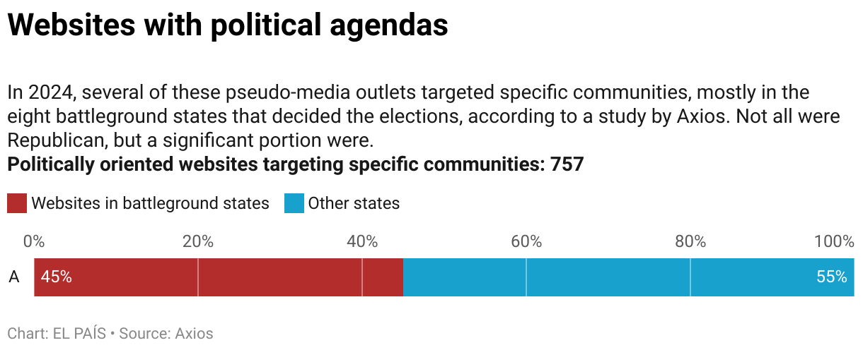 The Republican strategy goes beyond minimizing the influence of traditional media and developing direct communication channels. It also involves encouraging the creation of new outlets that present themselves as independent and mimic the format of traditional journalism, but are in fact propaganda platforms publishing unverified content disguised as news. The goal is to confuse audiences and reinforce ideological echo chambers. According to the organization Newsguard, as of June 2024 there were a total of 1,265 such websites in the United States. Typically funded by partisan groups, they now outnumber the 1,213 remaining local newspapers nationwide. These sites fuel an information war that further erodes public trust in traditional media.